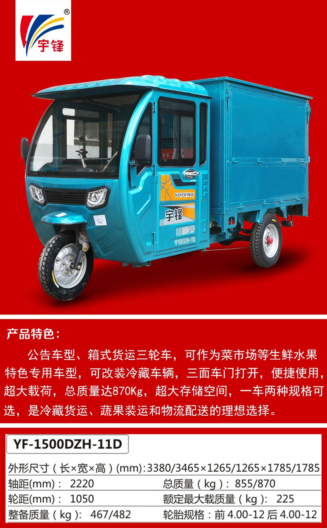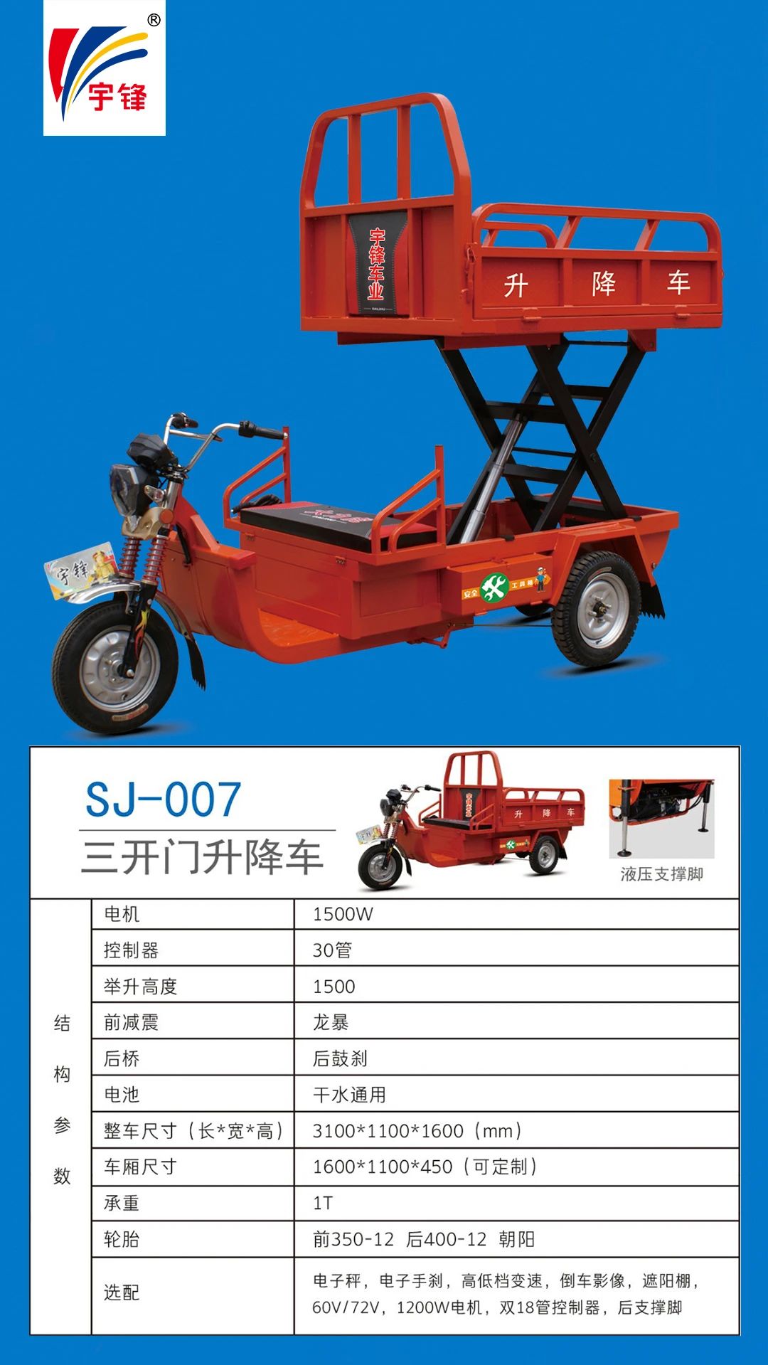 那輛宇鋒電動特種三輪車
