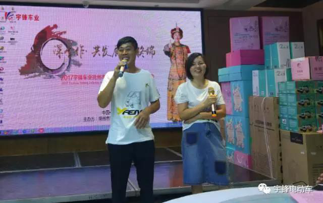 會上,撫州市宇鋒總代理王總夫婦分別做了熱情洋溢的發言,王夫人講述自己2005年從貸款3萬元做宇鋒電動車起家,到現在年銷量超過5000輛,成為撫州市電動三輪車市場老大的感人故事,只要堅持,就有機會勝利。關鍵是要有眼光,選擇大于努力,只有選擇好品牌,才會有更多的機會成為市場的王者。